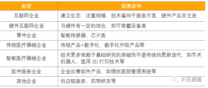 表1:数字医疗体系参与者分类 来源:火石创造根据公开资料整理