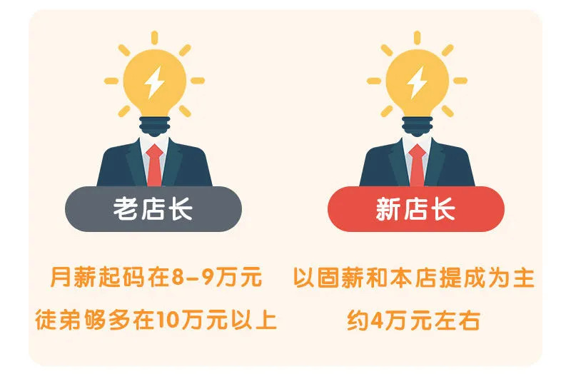 聪明人都会选择第二种,优秀的店长发展自己店面的同时,不断培养徒弟使其成为新的店长,实现层层分红,即优化了内部管理也壮大了人才队伍。