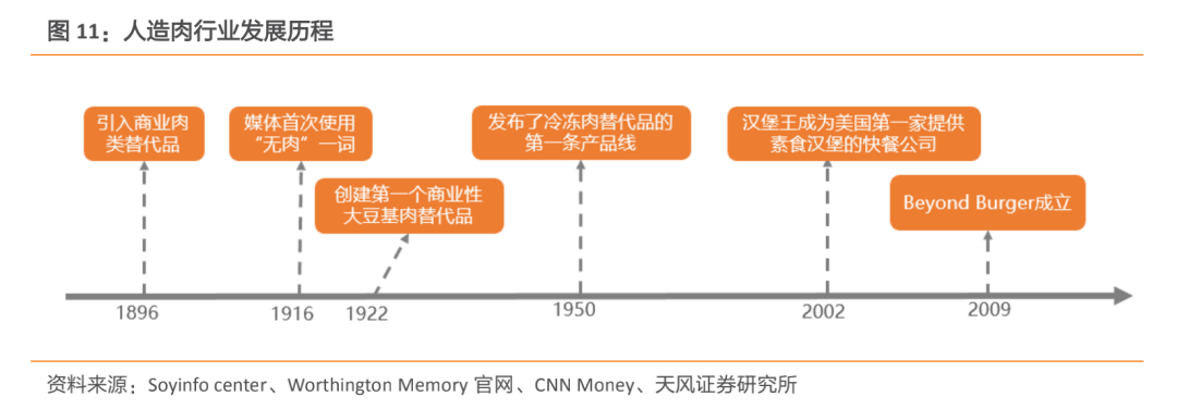 这是最早可考的“人造肉”行业的发展起源,当时“植物肉”“人造肉”的概念尚未出现,但发展方向开始明晰:寻找肉类的替代品,且从植物中提取主要成分。