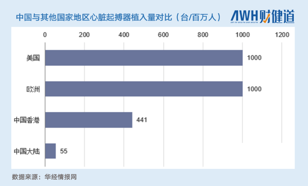 据华经情报网《2021-2026年中国心脏起搏器行业市场全景调研及投资规划建议报告》,我国心脏起搏器的社会渗透率不足10%,每百万人口起搏器植入仅 64.9台,远低于美国的 800-1000 台以及日本的 200-400 台。