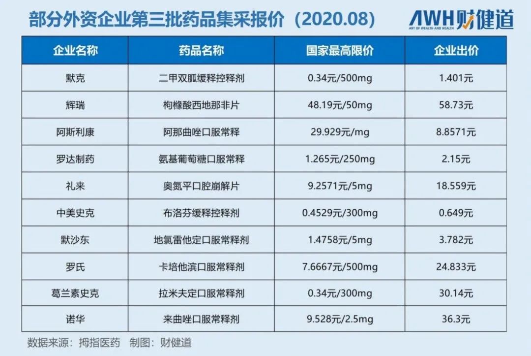 仿制品“泛滥”的品种集采中,中国仿制药企能凭借数量多、报价低的优势,将许多外资药企挤出“决赛圈”。对此,外企曾采取“报价观光”的策略,退出集采价格战。2020年8月外资药企的“集体出走”,最能说明其不愿过度以价换量的态度。