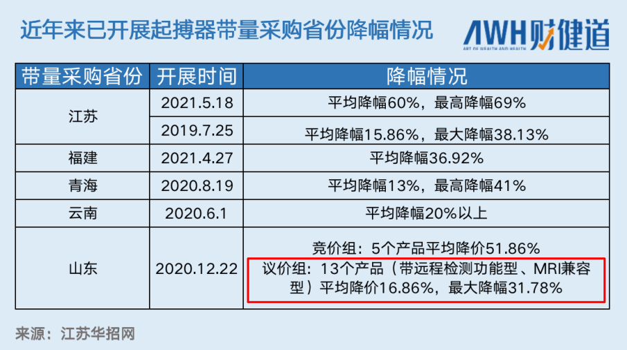 对比以往医疗器械集采,这次集采价格降幅不仅温和许多,中选品种也更多地考虑到市场需求度,并未出现药品集采时的“丢标”现象。而其他相继开展心脏起搏器集采的青海、安徽、云南、山东等省份,同样呈现出不超过50%的温和降价态势。