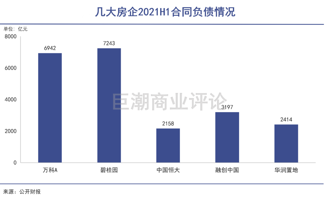 许多房企并未披露已售未结资源,以今年中报的合同负债对比来看,万科是同期恒大的三倍有余,是融创的2倍之多。可以看出,恒大、融创等房企此前通过快速结算销售额,“粉饰”出漂亮的财报。