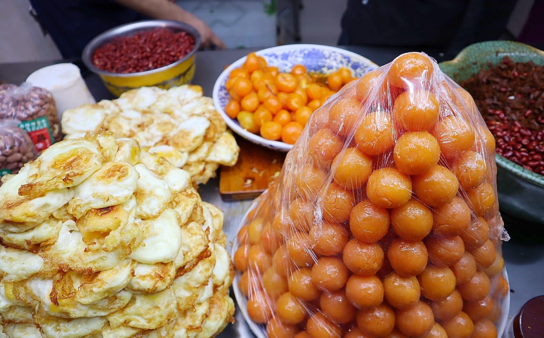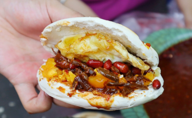 我家的蛋菜夹馍店开在洒金桥,已经度过20年的风雨。每逢寒暑假,我和两个姐姐都在店里帮忙,上小学我就学会揉面做馍了。将现烙的饦饦馍用小刀划开,抹上秘制酱料,夹入两颗咸蛋黄,铺一层玫瑰大头菜,撒上花生米,再裹入煎蛋,完成这一套步骤,我只需要10秒钟。