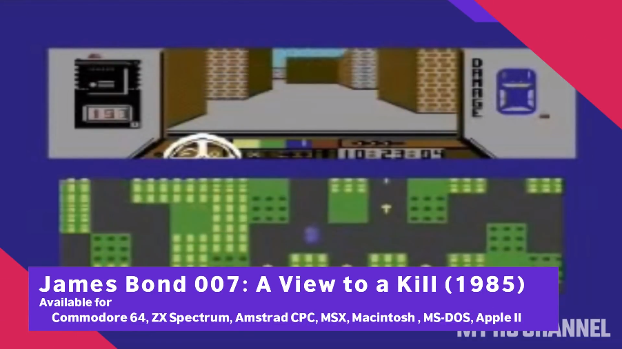 到了1985年的《007:雷霆杀机》才让玩家看出一点007的味道,这一作采用了上下分屏的设计,上屏以第一人称的驾驶视角让玩家在城市迷宫中行进,下屏则是显示地图让玩家确认方向,有点像NDS的分屏玩法设计。