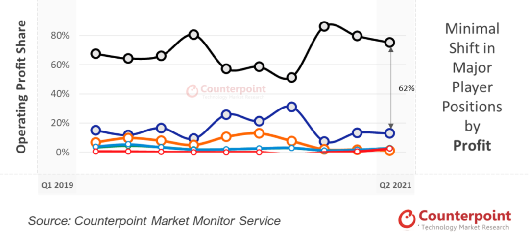 全球市场手机厂商2021Q2利润率排名,图源Counterpoint Research官网