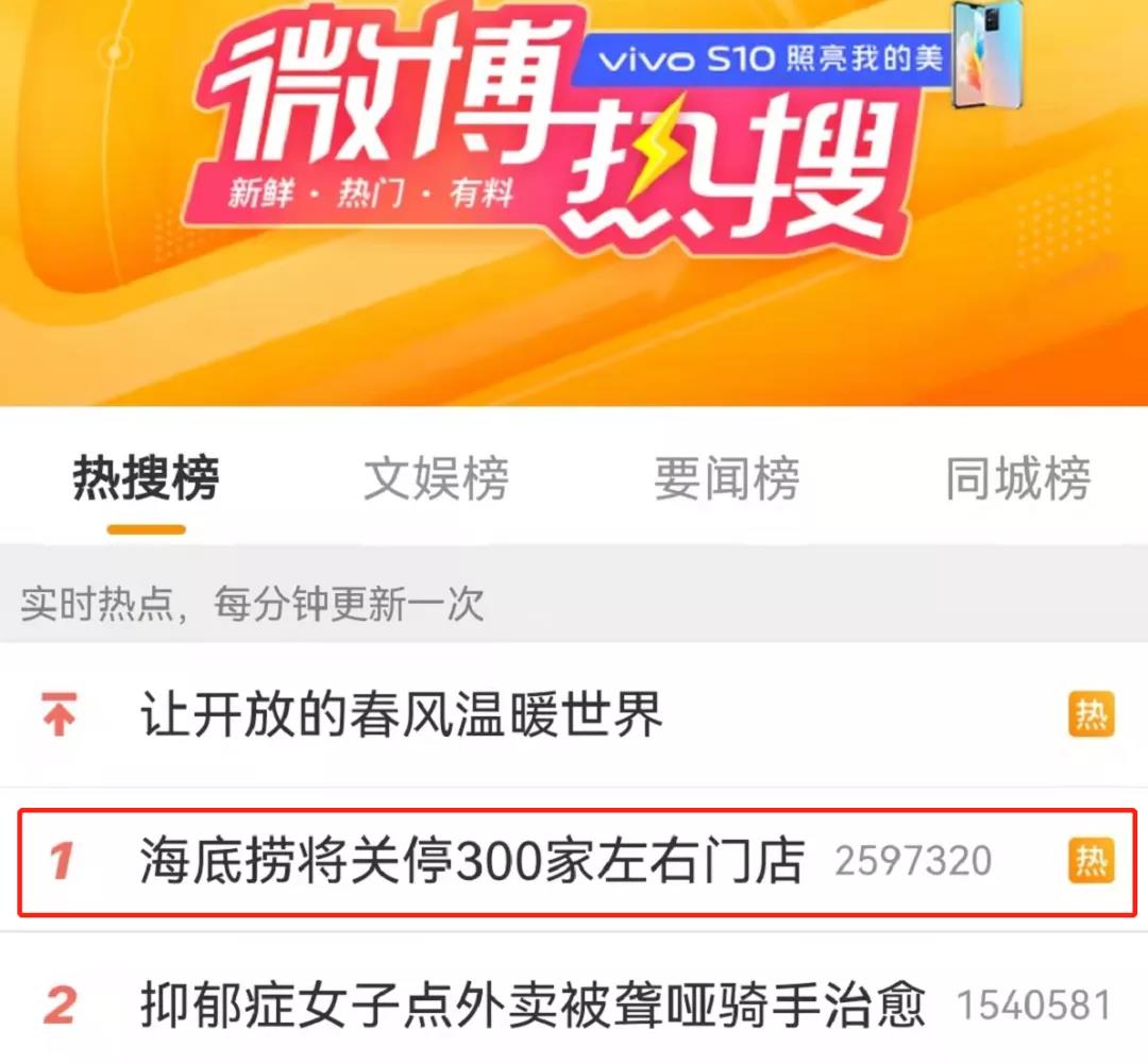 昨日,海底捞宣布关停300家门店的消息传出,就迅速登上微博实时热搜第一。实际上,据不完全统计,海底捞今年登上热搜榜的次数已经超过35次,而且负面话题偏多,比如“海底捞牛肉粒变素了”“郑州海底捞72元200克毛肚实际是有138克”等等。