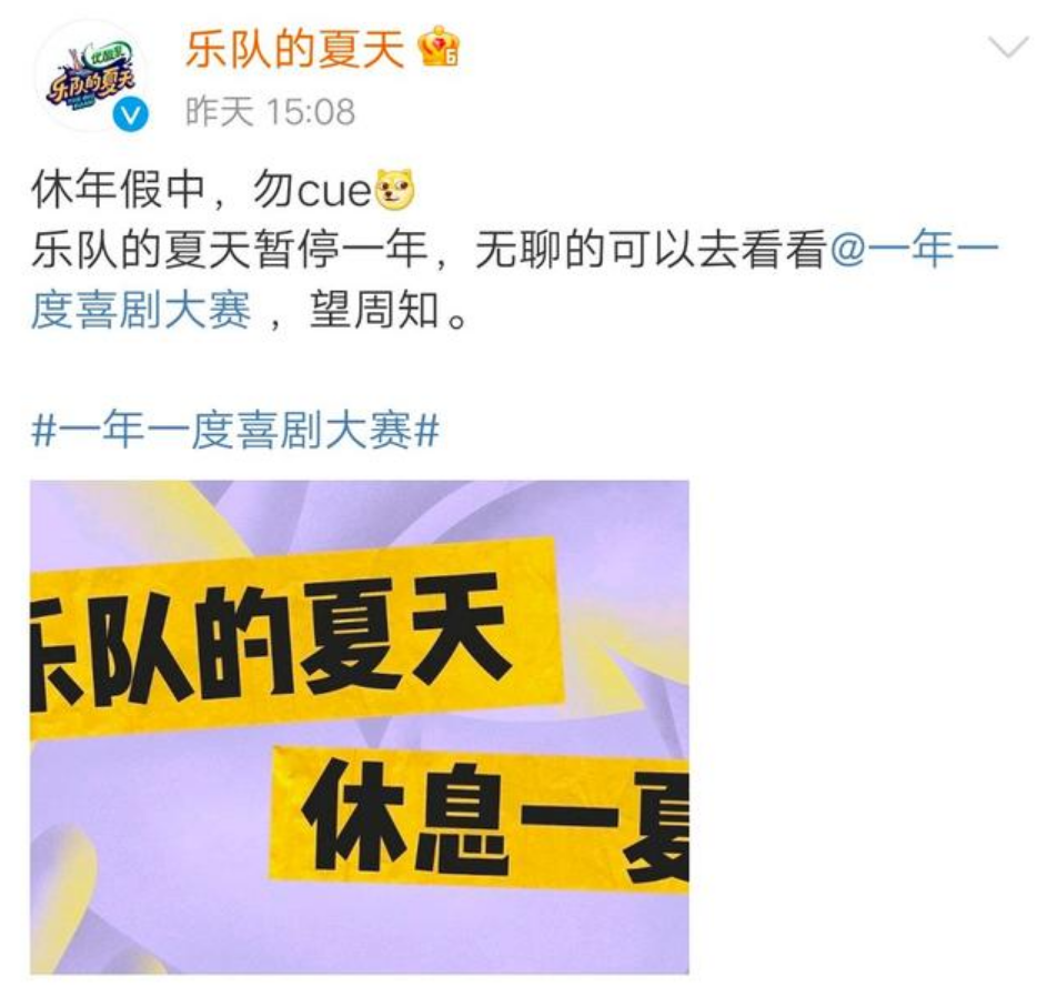 因此,“停播”《乐队的夏天》变得合理,米未开始聚焦喜剧。