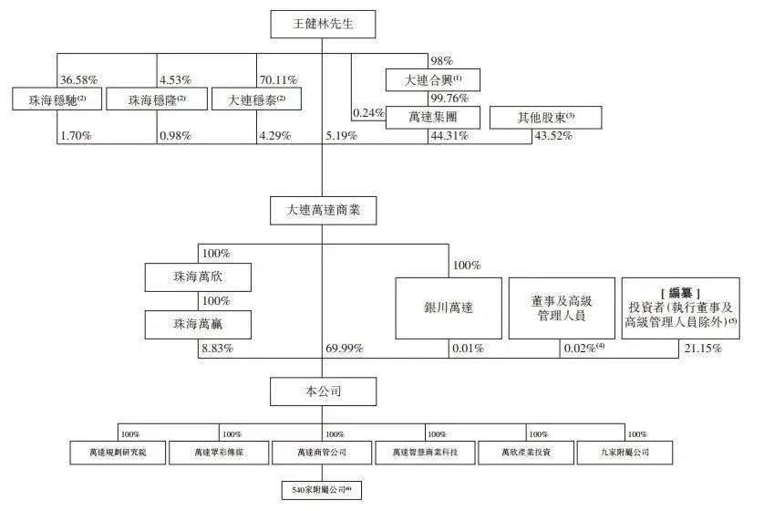 IPO前,大连万达商业持有珠海万达商管69.99%股权,王健林持有大连万达商业股权的52.68%,并间接持有珠海万达商管41.5%的股份,成为万达商管的第一大股东兼实控人。