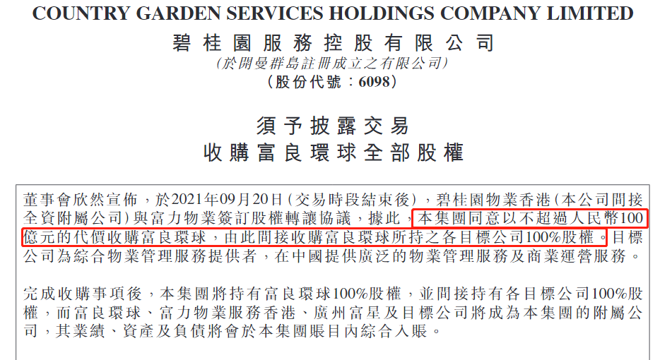 9月20日,碧桂园发布公告称,将以不超过100亿元的价格收购富力物业。此时富力招股书并未失效,但在卖身已成定局的情况下,有业内人士指出,或是富力意识到冲击IPO难以成功,而此时富力资金压力巨大,才被迫出售物业管理项目。