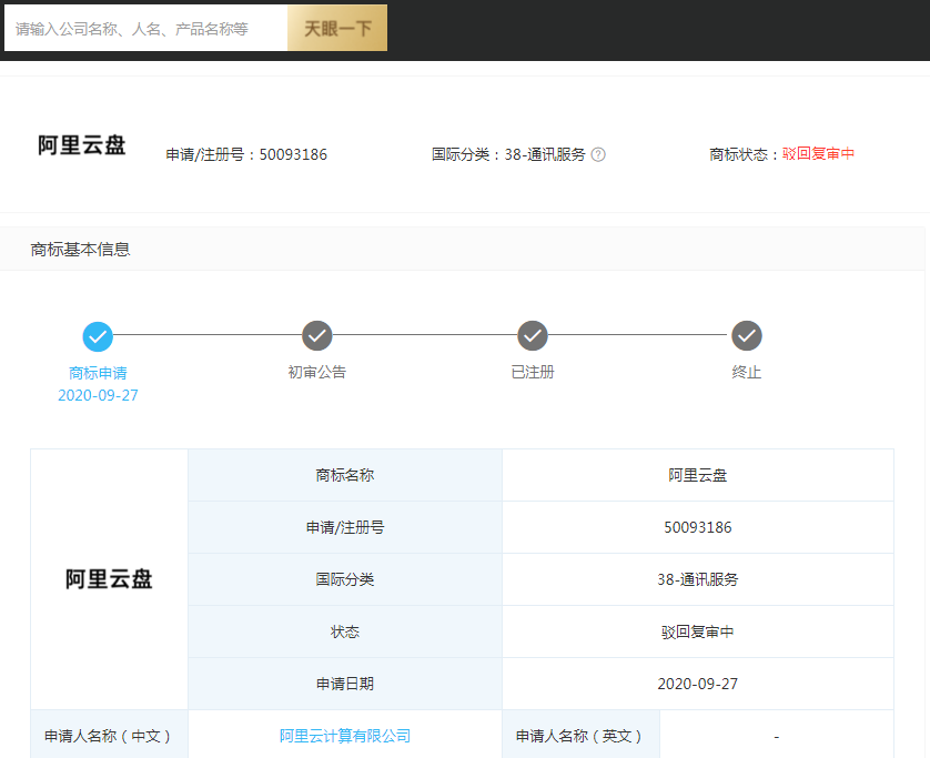 值得注意的是,据天眼查APP显示,阿里云盘的商标仍处于驳回复审中,这一从侧面体现出阿里云盘的生态尚未完善。
