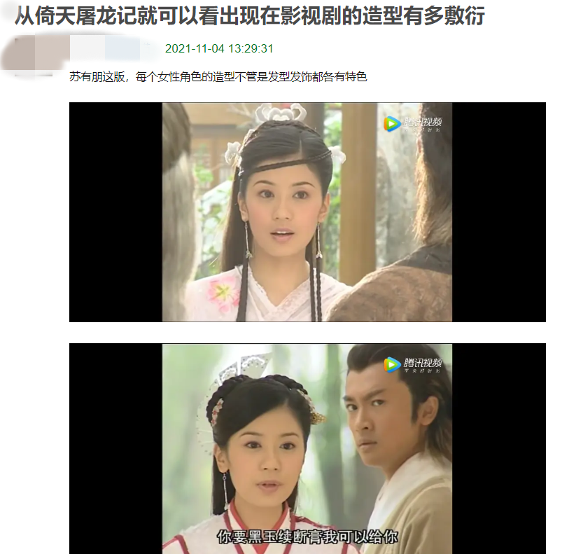 在豆瓣国产剧小组,老剧时不时会被网友翻出来讨论。主角泡面头的《小李飞刀》,赵敏头上插了扇子的《倚天屠龙记》,头上缀满塑料花朵的《东游记》……这些剧的造型不甚考究,却总能出现在被夸赞的阵营里。