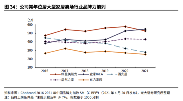作为家居龙头,红星美凯龙最牢固的基本盘,应当是公司35年来建立起的行业地位、卖场规模以及品牌优势。