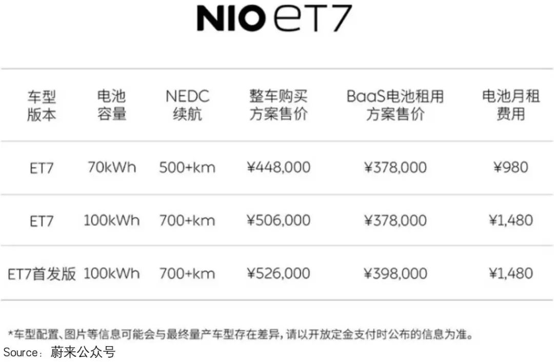 虽然ET7的售价比宝马5系高,但如果采用BaaS(电池租用服务)方案,补贴前售价直接拉到37.8万。