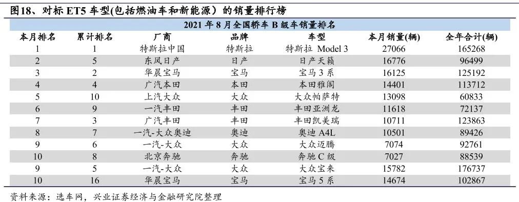 目前可知的信息是,ET5也将搭载最新NT2.0系统,交付时间预计在2022年下半年,其对标车型和市场如下: