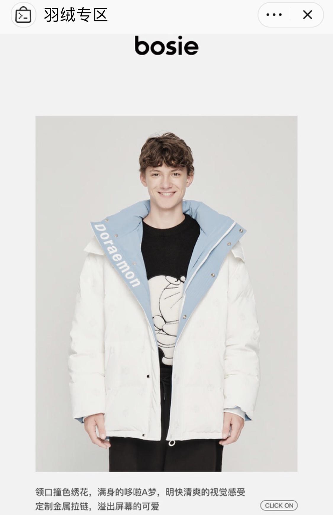 继2020年,bosie推出与小王子联名的羽绒服成为了“爆款”,bosie今年持续把握双11的羽绒服销售黄金期推出了新款羽绒服,发布了包含与知名IP哆啦A梦的联名系列在内的产品。