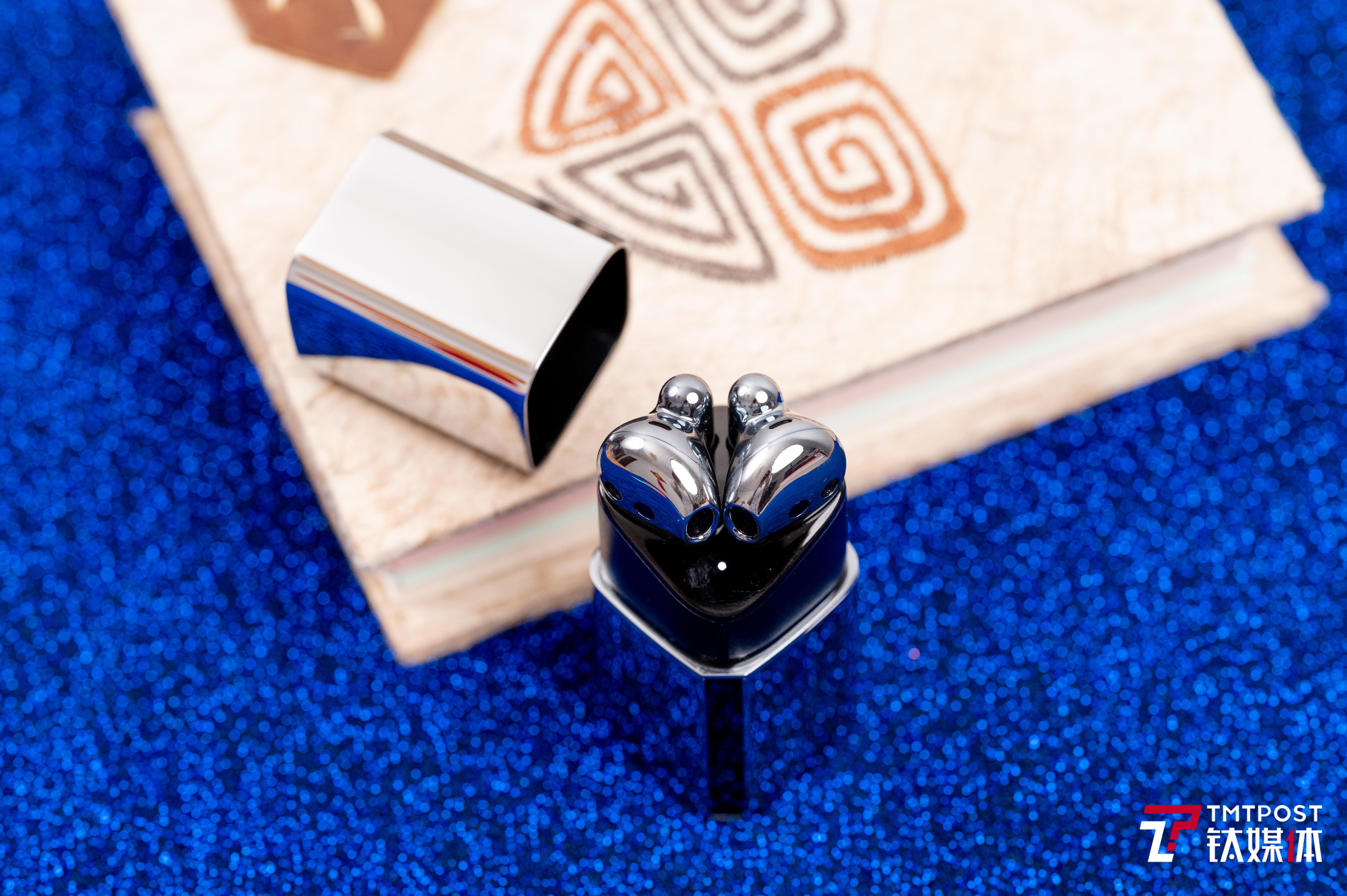 同时,对于整体外壳采用了更为贵重的奢侈品级精钢,经手工抛光打磨+微米级镀膜涂层双工艺的雕琢后,呈现更好的质感,尽显高贵华丽气质。使得在外观上类似的同时,拿在手里沉甸甸的手感也很像一只口红,除了此次钛媒体拿到的新潮冰霜配色,还有经典蜜语配色,前者突出的是理性风,后者则更偏时尚性。