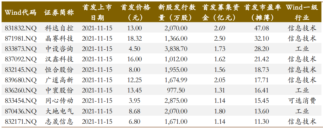 北交所上市10只新股 资料来源:Wind,德邦研究所