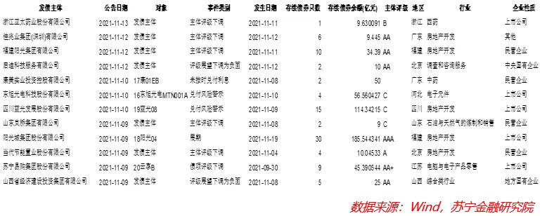 11月8日-11月14日,12只信用债发生违约或评级下调(不含金融业)。