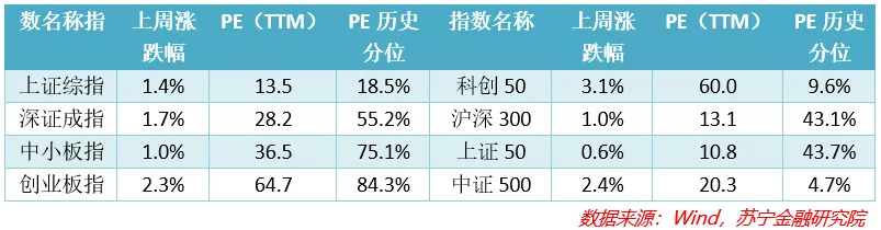 上周A股市场全面反弹,其中科创50指数上涨3.1%,中证500上涨2.4%,创业板指上涨2.3%,涨幅最少的上证50上涨0.6%。