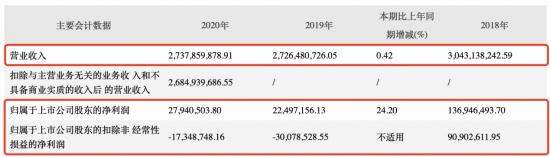但没成想,敲钟竟成了奥康高光时刻的终结点。在同年实现34.55亿元营收和5.13亿元净利润后,其业绩呈逐年下滑趋势。到了2019年和2020年,奥康扣非净利润出现了负数。