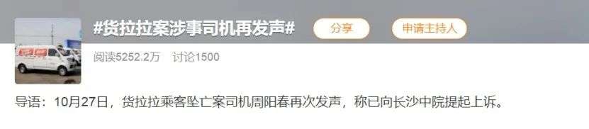 巧合的是,10月传出货拉拉上市消息之后不久,“23岁货拉拉乘客跳窗身亡”事件又有新进展。据头条新闻报道,涉事司机发文称不认可自己过失行为与乘客坠亡之间的因果关系,其家属表示已向长沙中院提起上诉,目前律师已介入阅卷。