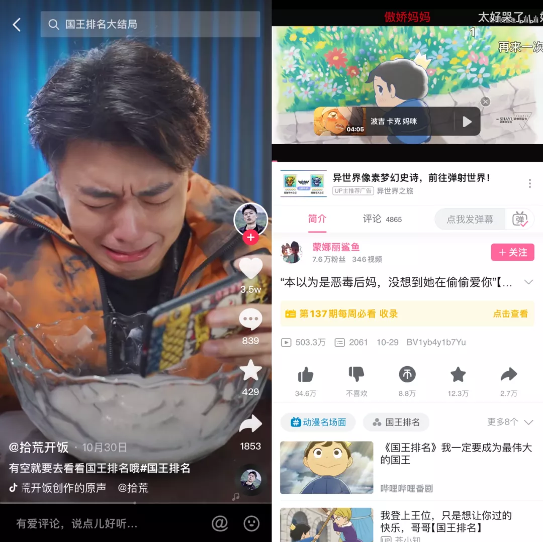 在各大社交媒体平台上,不少达人和用户在自己的视频里痛哭流涕地“安利”着一部名为《国王排名》动漫作品,并将它视为十月乃至年度最佳新番。