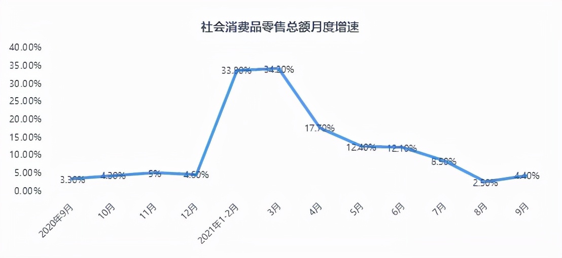 数据显示,今年我国第三季度GDP增速今为4.9%,低于预期。9月份,社会消费品零售总额36833亿元,同比增长4.4%。8月份增速更为惨淡,仅为2.5%,创近一年来新低。