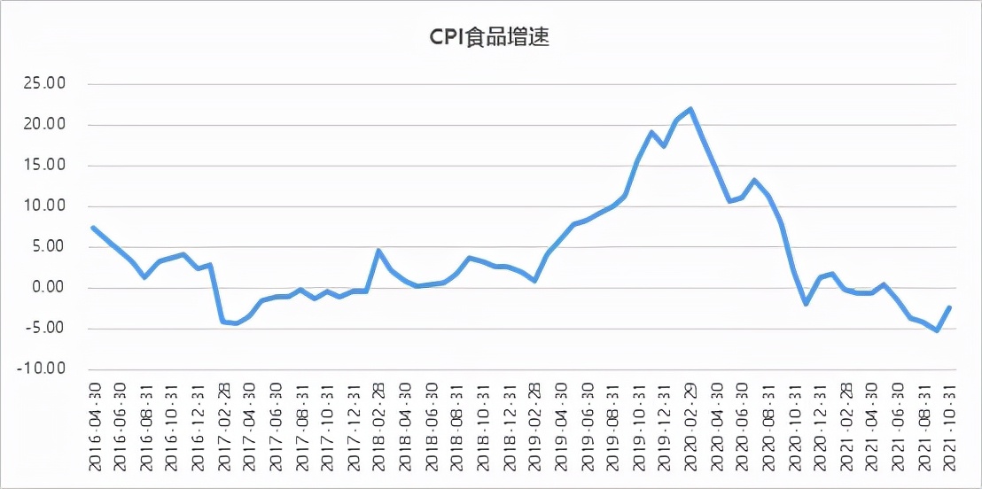 而CPI食品类增速在9月创出-5.2%的阶段新低后,10月出现了反弹。猪肉价格下跌拖累了CPI食品项。同样,近期猪肉价格的反弹也带动了10月食品项回暖。