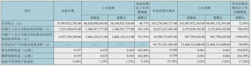 近日,京东方披露了2021年三季度报告。数据显示,京东方前三季度实现营收1632.78亿元,同比增长72.05%;归母净利润200.15亿元,同比增长708.43%。其中,第三季度公司实现营收为559.93亿元,同比增长46.77%,归母净利润为72.53亿元,同比增长441.14%。