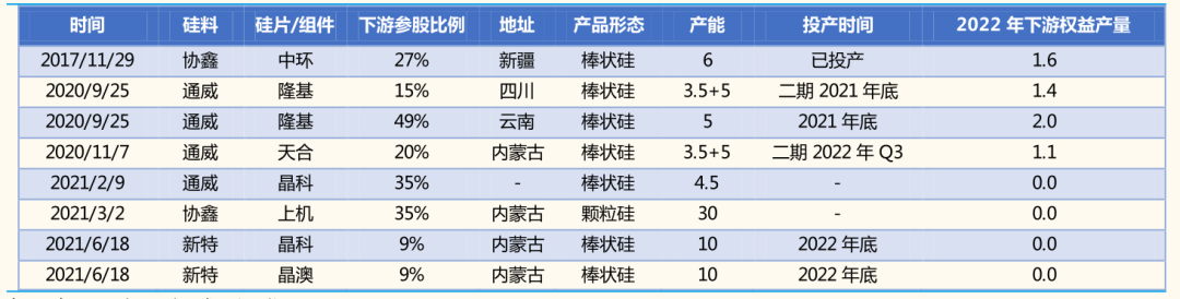 图5:下游企业通过参股方式绑定头部多晶硅企业(万吨),资料来源:各公司公告,国金证券