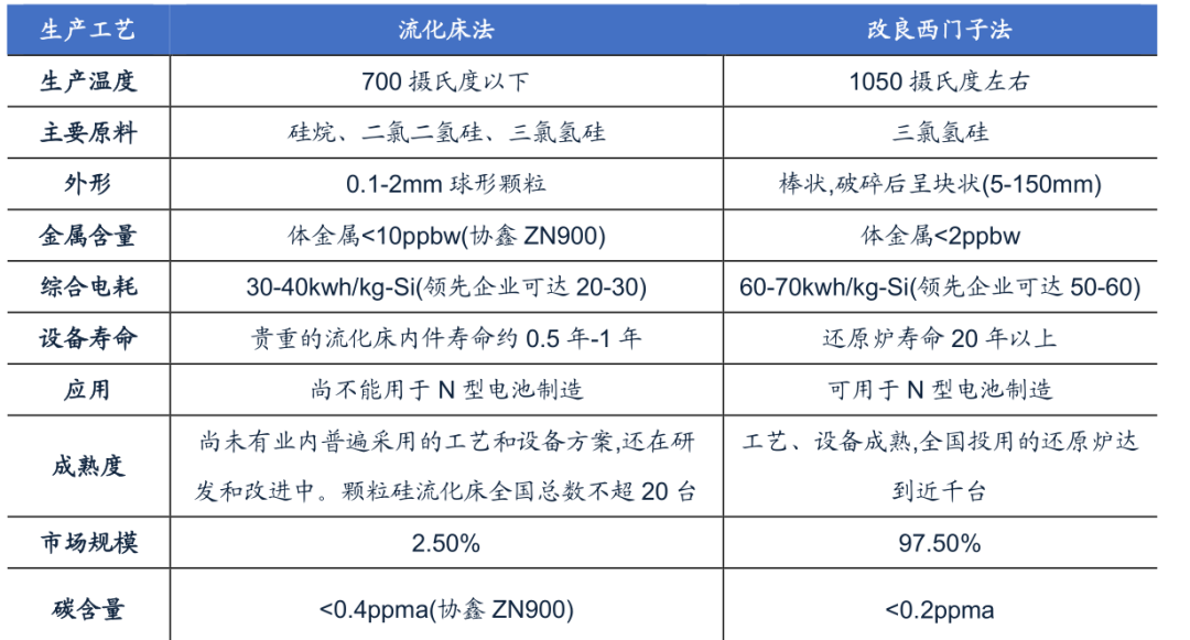 图10:西门子法和流化床法的优劣势比较,资料来源:亚洲硅业科创板上市申请文件的审核问询函回复,广发证券