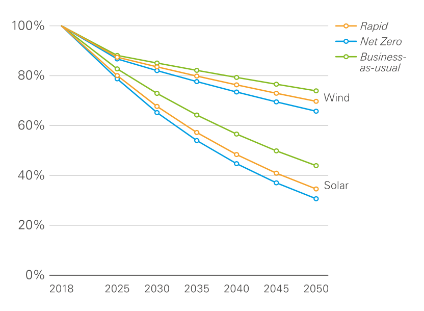 图3:未来30年光伏成本下降曲线,资料来源:BP Energy