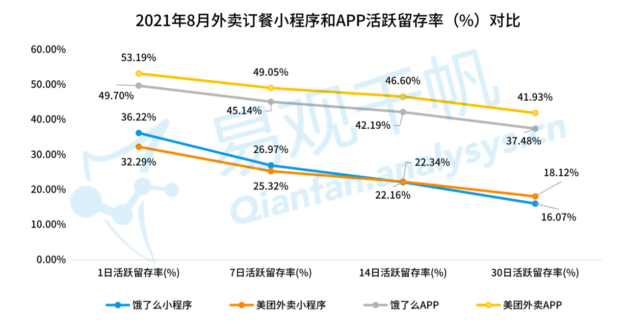 APP使用时长高,小程序使用次数多,活跃留存率APP领先