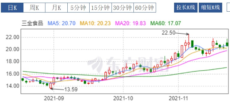 而在股价表现方面,三全食品受市场情绪等方面的影响,今年以来股价震荡下跌,但是9月份以来开启反弹。9月份至今该股已经累计涨超42%,当前(11月19日收盘)报20.57元,总市值180.85亿元。