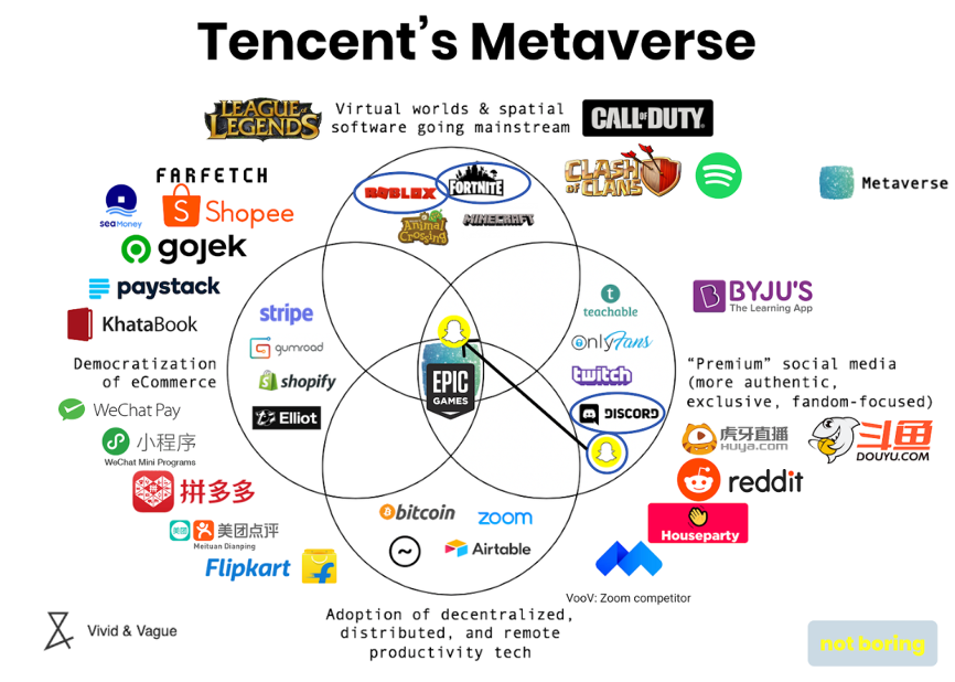 作为关键选手,基于社交+内容的布局主线,腾讯已经投资了Soul(社交元宇宙)、Epic、Roblox、Wave、AR开发平台等,成为了在元宇宙“每个环节都掌握了最关键的选手”。而在11月16日的第三季度财报电话会上,网易创始人丁磊表示:“网易在元宇宙相关技术和规则上,都做好了准备。”