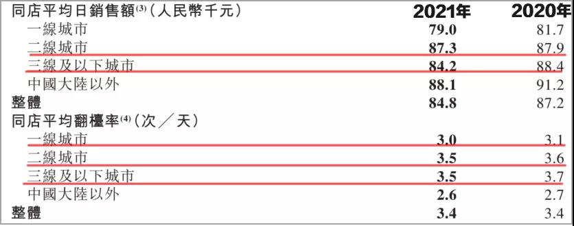 同样在倍速扩店,呷哺呷哺旗下的湊湊火锅2020年上半年的翻台率是1.9,今年上半年已恢复到2.6;九毛九的太二酸菜鱼,翻台率从2020年的3.4上涨到了3.7。