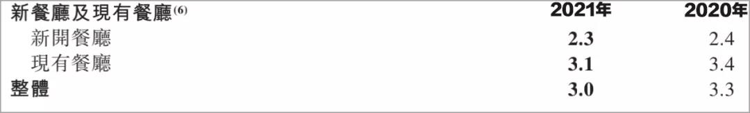 图 / 海底捞2021年半年报(2020年、2021年上半年海底捞新开及现有餐厅的翻台率)