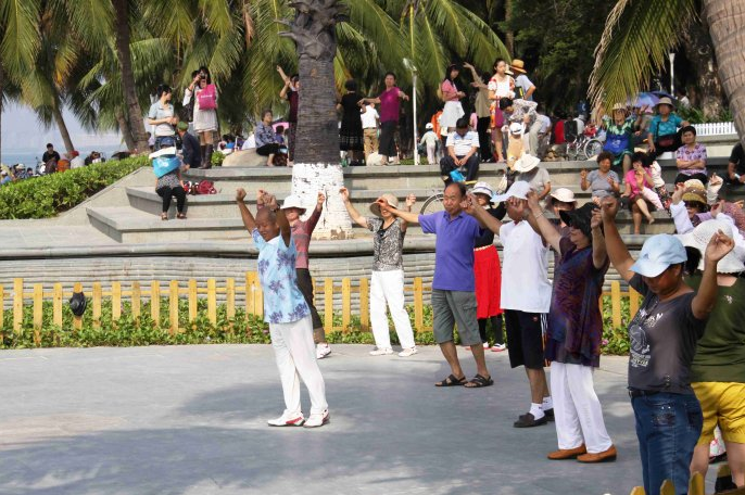 当然在海南的广场上,广场舞曲目也会随着候鸟的入驻季节性的切换,“东北二人转”与“海南竹竿舞”这样的文化碰撞会有什么新的化学反应也值得我们遐想。
