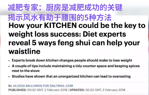 在英国,媒体经常给英国人提供风水指导,比如《每日邮报》上,视频专家会告诉读者,厨房的风水摆设如何帮助减肥,电视台每周都有风水节目;