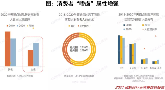 卤味本身最大的特点就在于成瘾性,消费者容易冲动下单。吃过卤制品的朋友应该都有一种停不下来的感觉,那不是你的错,只是脑垂体分泌激素产生的本能诱惑。兼具“肉食、辣、重盐、甜”四大成瘾因素的卤味能够在体内生成令人愉悦的神奇物质,比如内啡肽和多巴胺。麻辣鲜香的口感加上上好的卤汁制作出来的卤味,浑身散发着一种迷人的香气,一吃就上瘾,让人意犹未尽。成瘾性从而提升了其复购率,属于高频类消费品。