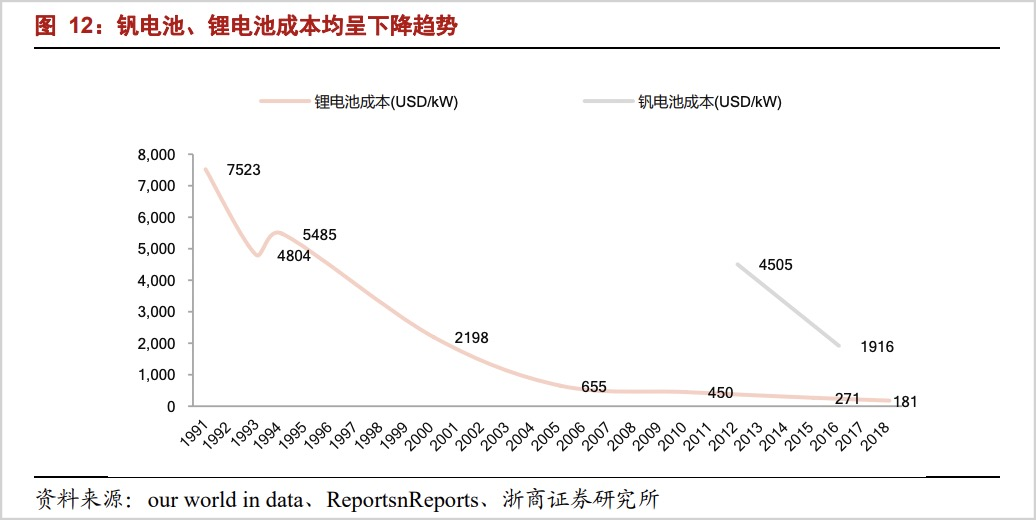 钒电池和锂电池的成本趋势