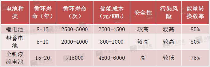 相比于钠硫电池和锂离子电池,钒液流电池容量更大、更安全环保、循环寿命更长、能量转换效率高,早在十几年前就它被认为是储能中的“希望之星”,是未来储能技术的首选技术。