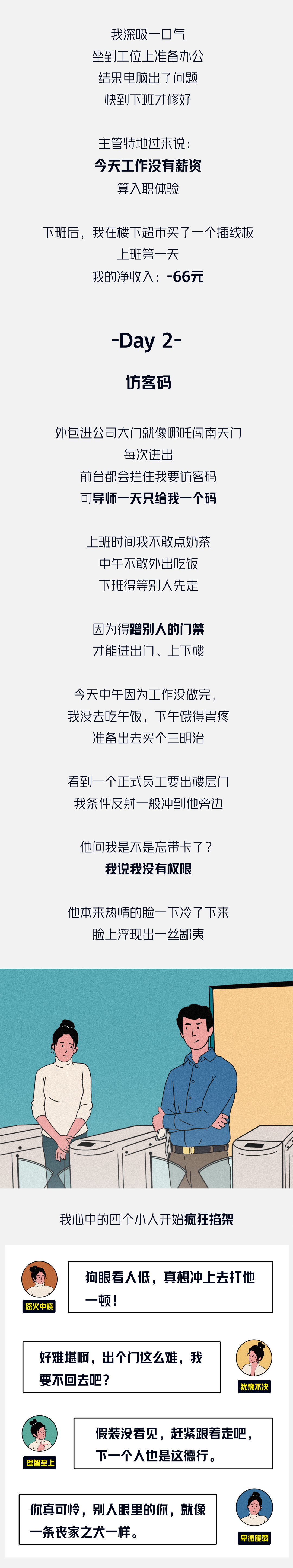 看似都是坐在人体工学椅上的螺丝钉,有些螺丝钉却更加卑微,工牌分色、用访客码进出,这些细节时刻提醒着他们:职场也在分着三六九等。