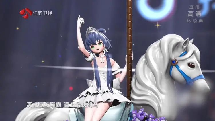 很快,中国也有了自己的虚拟歌手,“洛天依”和“言和”。B 站 UP 主 ilem 用他们的声音创作了诸如《普通 disco》《达拉崩吧》这样新时代神曲。而两位虚拟歌手的高光时刻,莫过于在 2017 年末江苏卫视的跨年晚会之上,洛天依、言和与薛之谦一起共同演绎了《达拉崩吧》,成为了当时微博上最有趣的热搜。