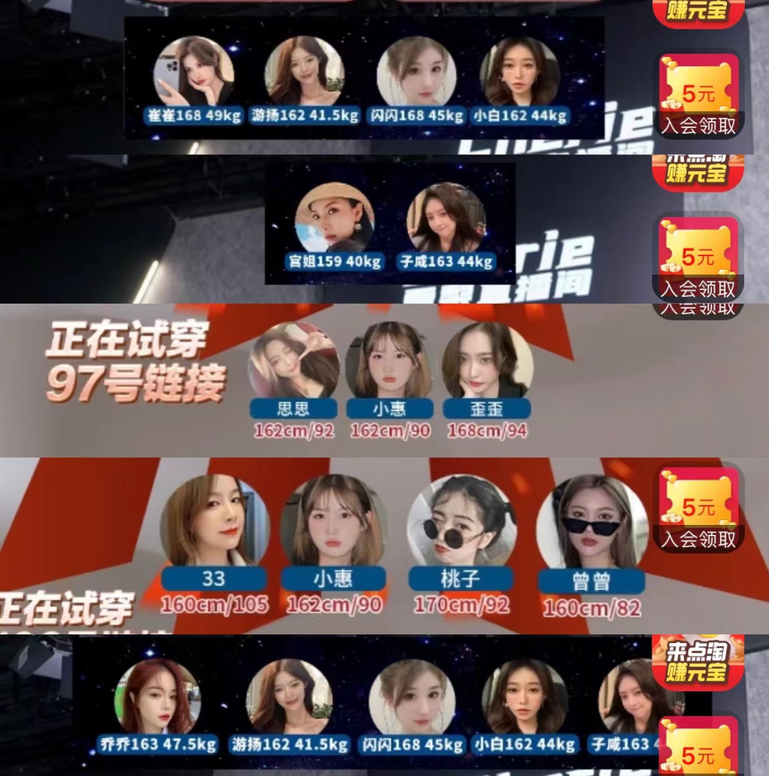 以近期直播为例,模特出镜重复率极低