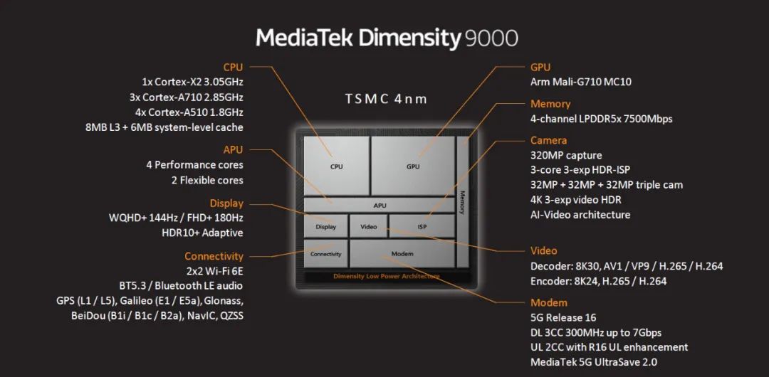 可以说,天玑9000除了CPU配置基本高过高通8系列以往产品的配置,其他指标也做到了顶格,一改联发科往日保守的风格。
