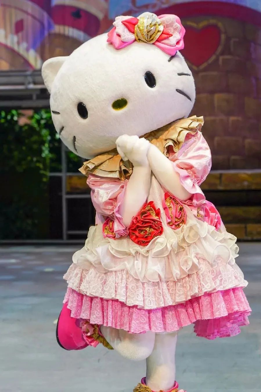 杭州乐园里的Hello Kitty保持了一贯的“公主风”,Lolita洋装傍身,粉红奶油色系,同样的花车巡游,同样的和粉丝合影,也拯救不了它的“花瓶味”。