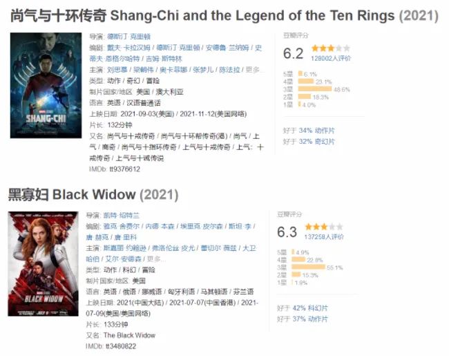 今年漫威影业共推出了三部电影,分别是《黑寡妇》《尚气:十环传奇》《永恒族》。三部票房都不及预期(均未达5亿美元),口碑也和《惊奇队长》一样遭遇口碑滑坡。