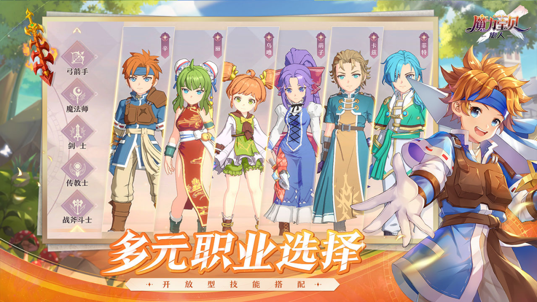 例如六大角色,且可转职为弓箭手、魔术师、剑士、传教士、战斧斗士、咒术等不同职业。此外,游戏中不仅有水、火、风、土循环相克的基础设定,还设有“种族全克”、“种族半克”系统。